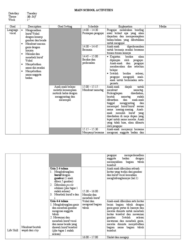 Pdf Rencana Kegiatan Harian Rkh Kelompok Bermain Kb Semester