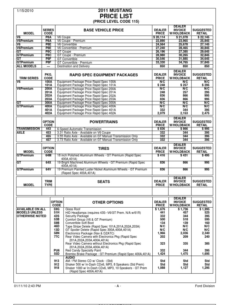 Mustang Price Guide Transportation Engineering
